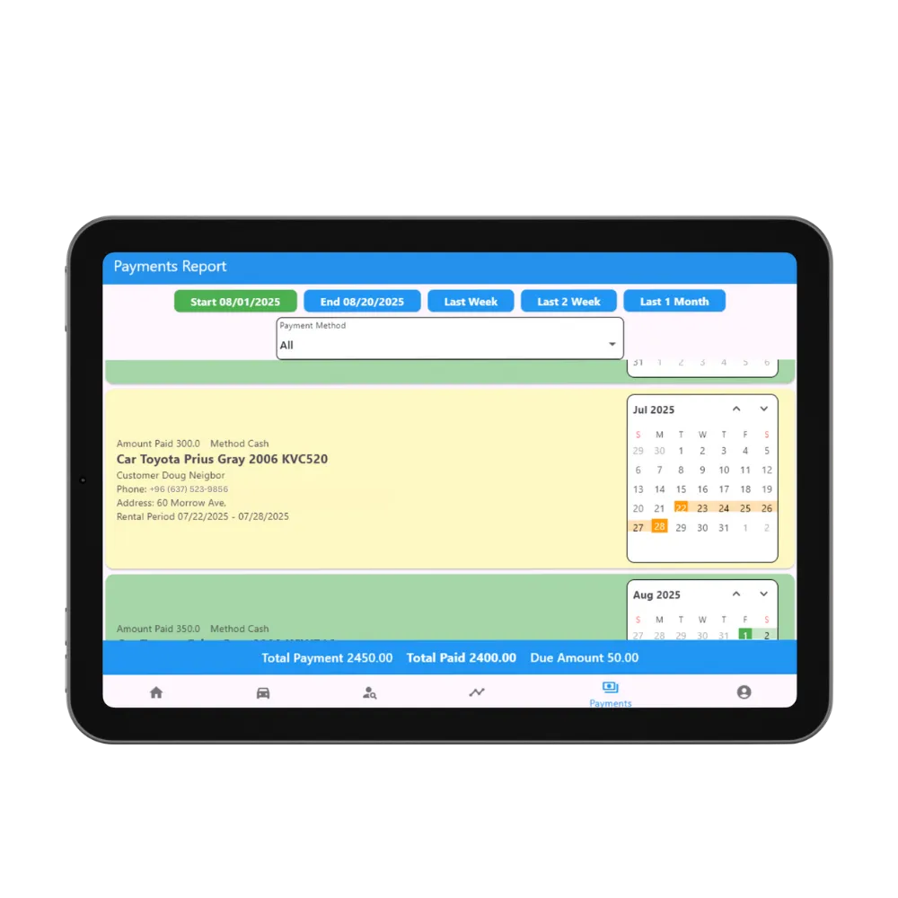 Discover how our app makes managing your car rental business effortless. From tracking cars and customers to handling payments, maintenance, and revenue—all the tools you need are packed inside a clean, user-friendly interface.